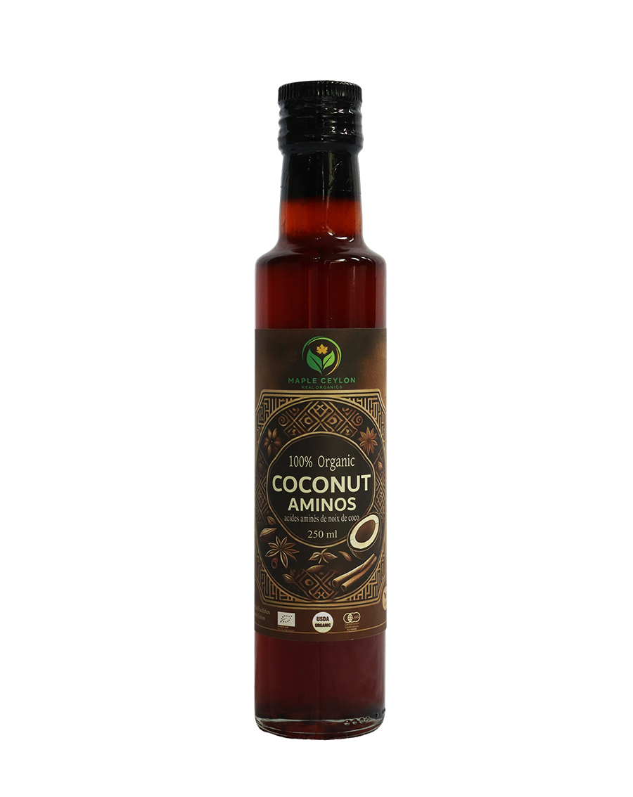 “Coconut aminos is a gluten-free soy sauce alternative made with coconut nectar and vinegar. It can be used in marinades, sauces, or to flavor savory dishes. Coconut aminos has a slightly sweet taste with a rich umami flavor that enhances a variety of dishes without being overly salty.”