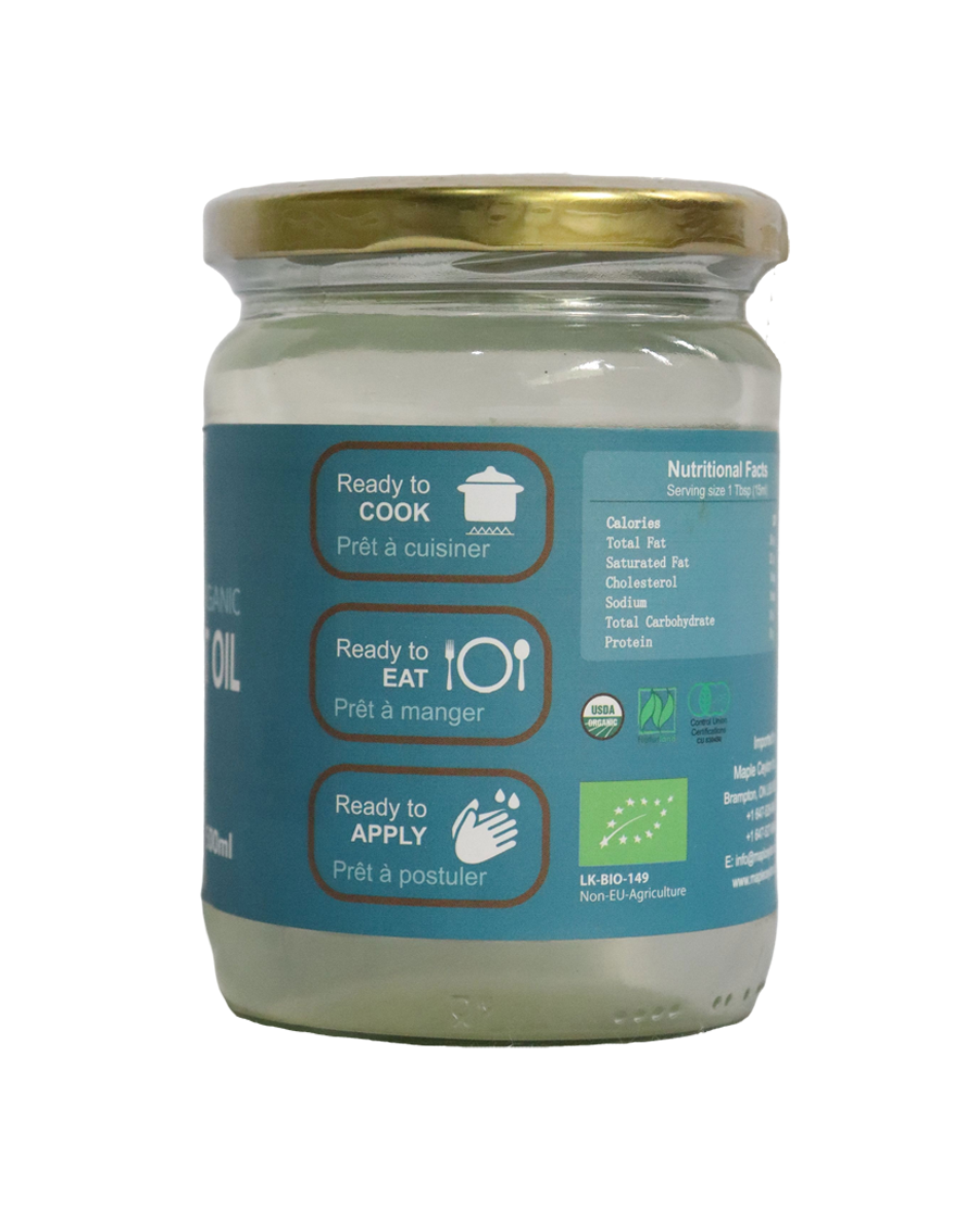 Maple Ceylon’s Organic Virgin Coconut Oil is a pure and natural product made from fresh coconuts harvested in Sri Lanka. Cold-pressed to preserve its natural nutrients, this virgin coconut oil is perfect for a wide range of uses. It’s a healthy option for cooking, skincare, and hair care. The mild, fresh coconut aroma adds a touch of natural fragrance to your dishes and body care routines. USDA certified, it guarantees quality and purity.